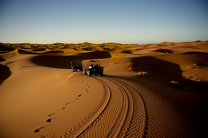 Merzouga is the gateway to Morocco’s most iconic dune field, Erg Chebbi, renowned for its towering dunes that reach 150 meters and its vast, open desert landscapes. These unique natural features make Merzouga the perfect location for buggy riding, offering:
